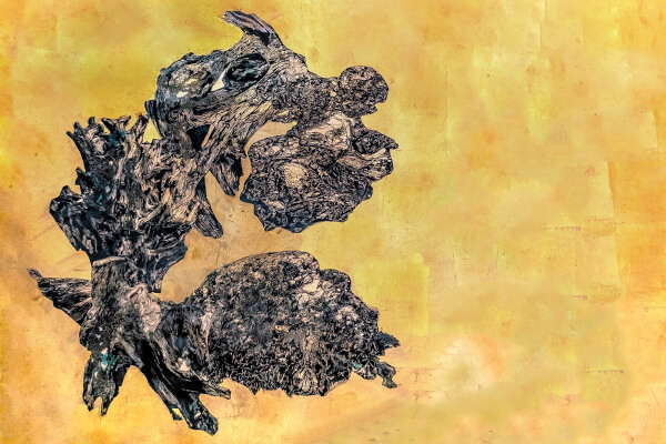 My practice centers displacement and belonging, our relationship with land, pattern, and transformation. Working with displaced materials, threatened landscapes, and patterns both natural and human-made, I reveal the sacred geometries embedded within them. At the core of this work is transformation. Alchemy, from the Arabic word al-kimiya, refers to the transformation of base metals into gold, but also the purification of self through that process. My process follows alchemical stages: burning, cutting, dissolving, reassembling, gilding. The same material reforms into new configurations, the making as transformative personally as it is materially. The work is dynamic, evolving into new stages in each space. This is the alchemy of becoming: transformation as ongoing practice, where hope lives, the same material holding futures not yet imagined.